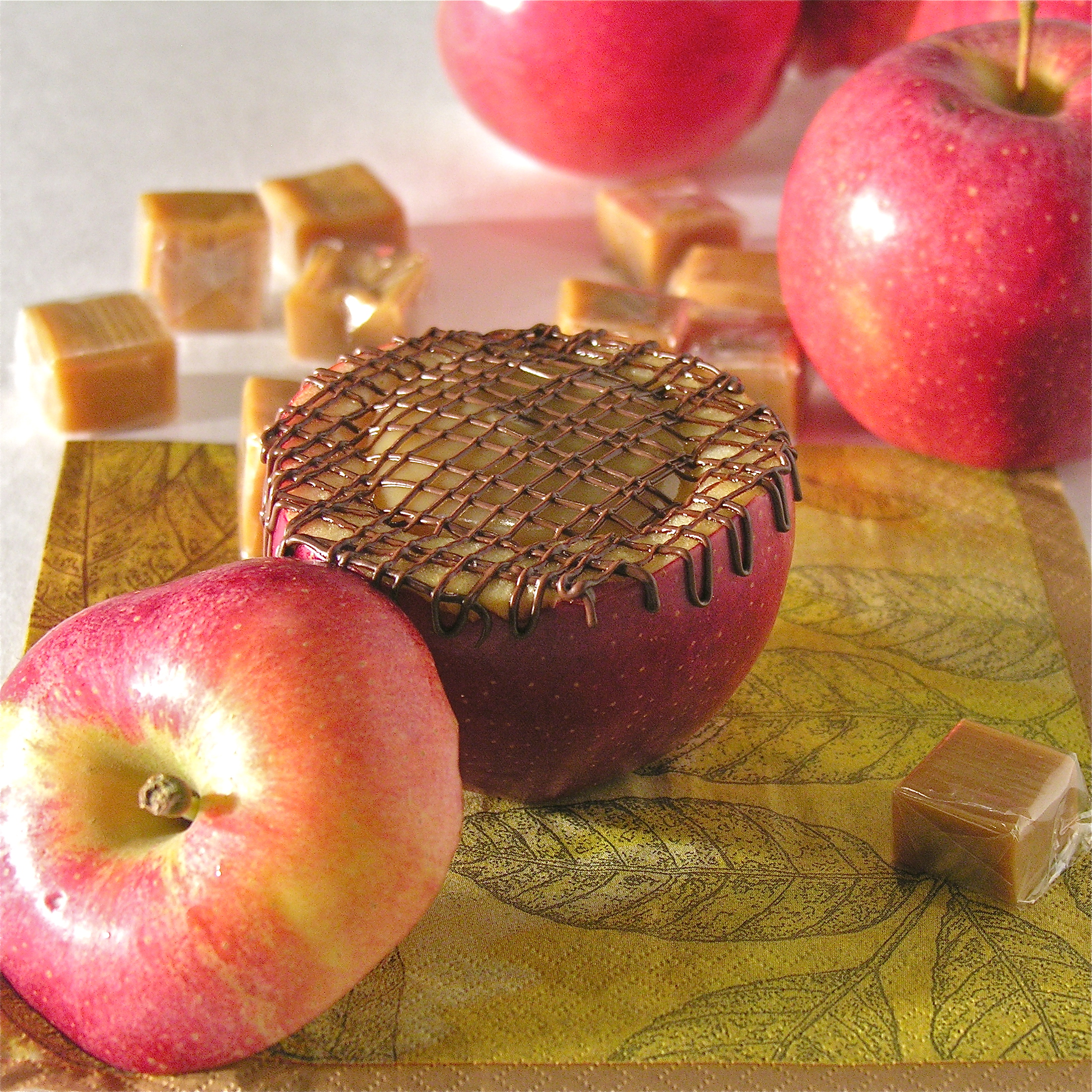 Celebrate fall with a unique twist on the caramel apple: soft creamy caramel and chocolate on the INSIDE of the apple! Happy October to YOU!