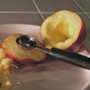 • Cut top off of apple, scoop out core and seeds with a melon baller
