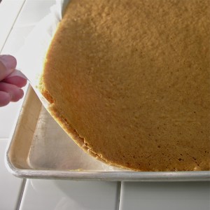 • Pour batter into pan over greased wax paper and spread evenly to all sides.  Tap pan on counter to settle batter and get air bubbles to top.