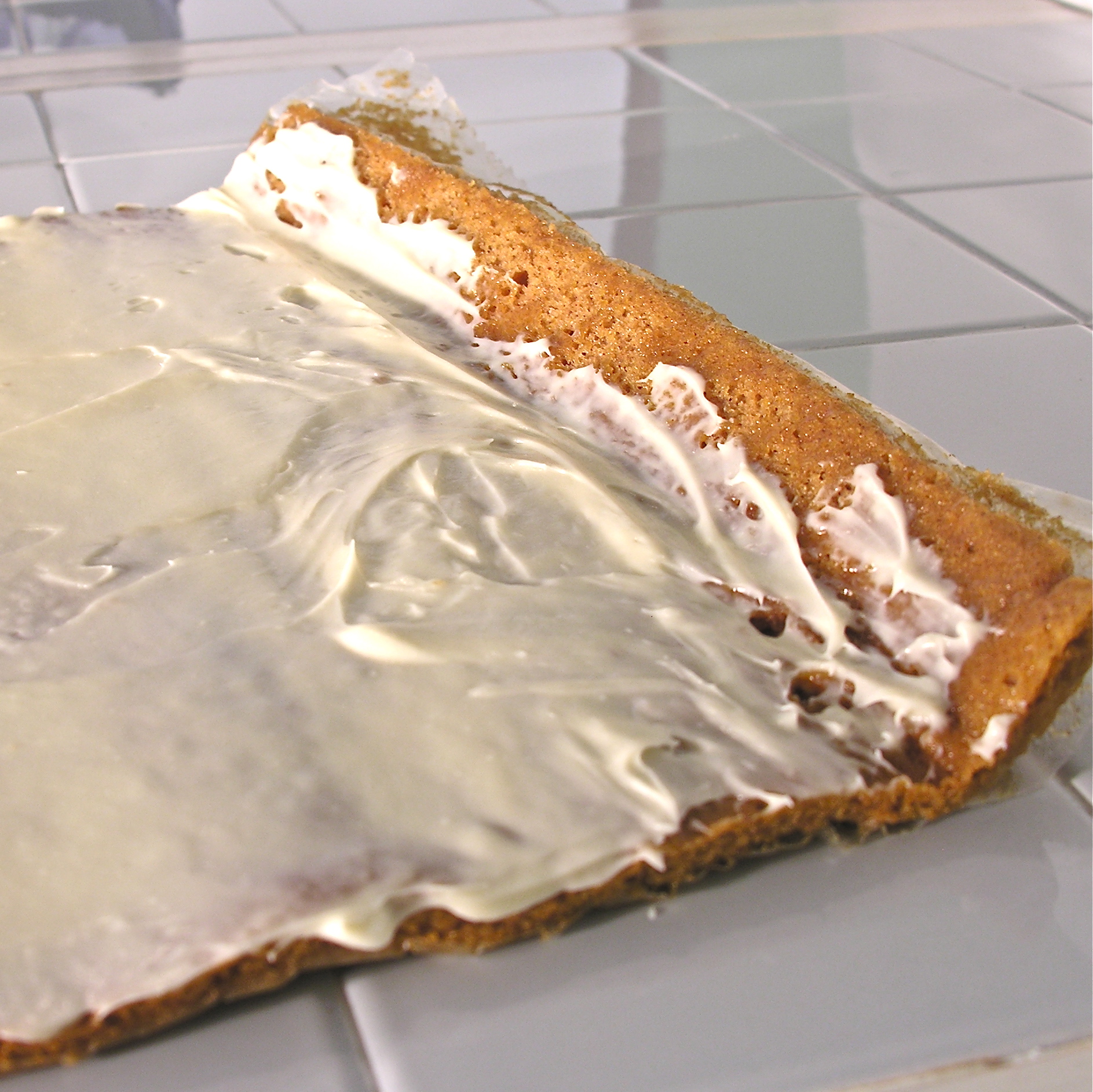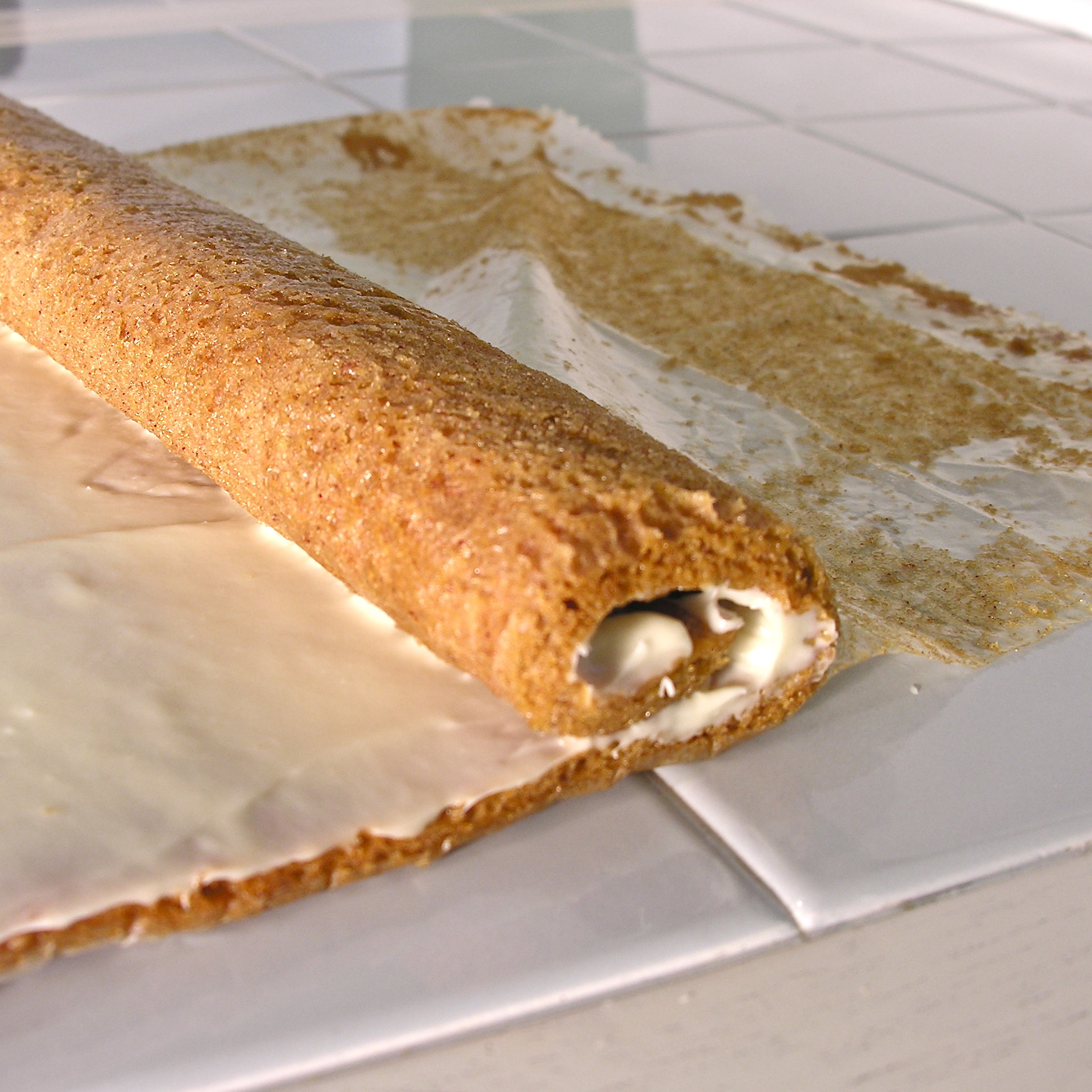 • Spread filling over top of opened roll and then re-roll this up *removing the wax paper as you roll*