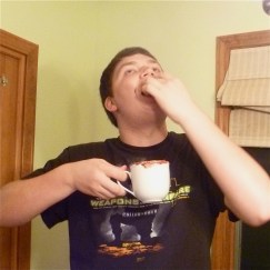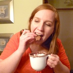 To do a Slam:  Bite off the corners on two opposite sides (diagonal from each other).  Place one bitten off corner in a hot chocolate or mocha and drink up some of the hot beverage through the other bitten off corner– pulling the hot beverage up through the cookie like a straw.  Pop the WHOLE cookie in your mouth and it EXPLODES in warm gooey chocolate happiness! 🙂  (If you don’t pop the whole thing in your mouth you will have chocolate running all over you…just FYI).  In our area, Tim Tams are only available near Christmas, so Tim Tam Slams have become a fun Christmas tradition!