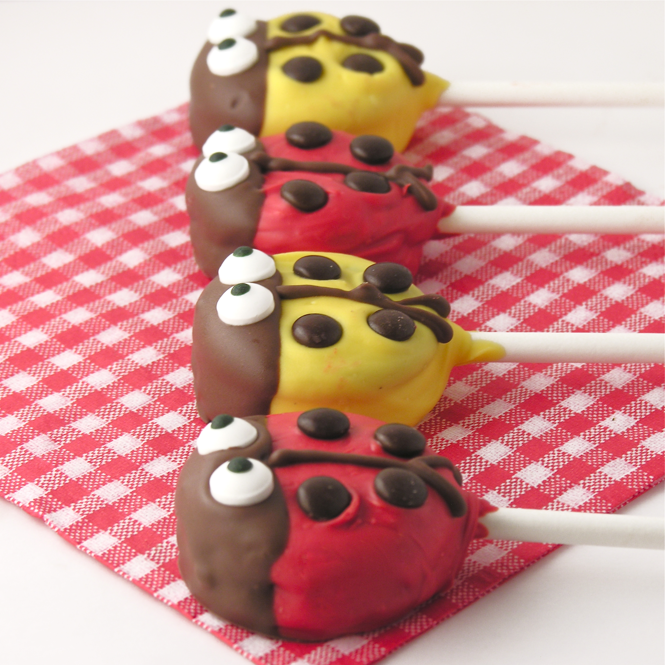 • Set each pop on parchment paper and add candy eyes (if desired) before chocolate hardens.