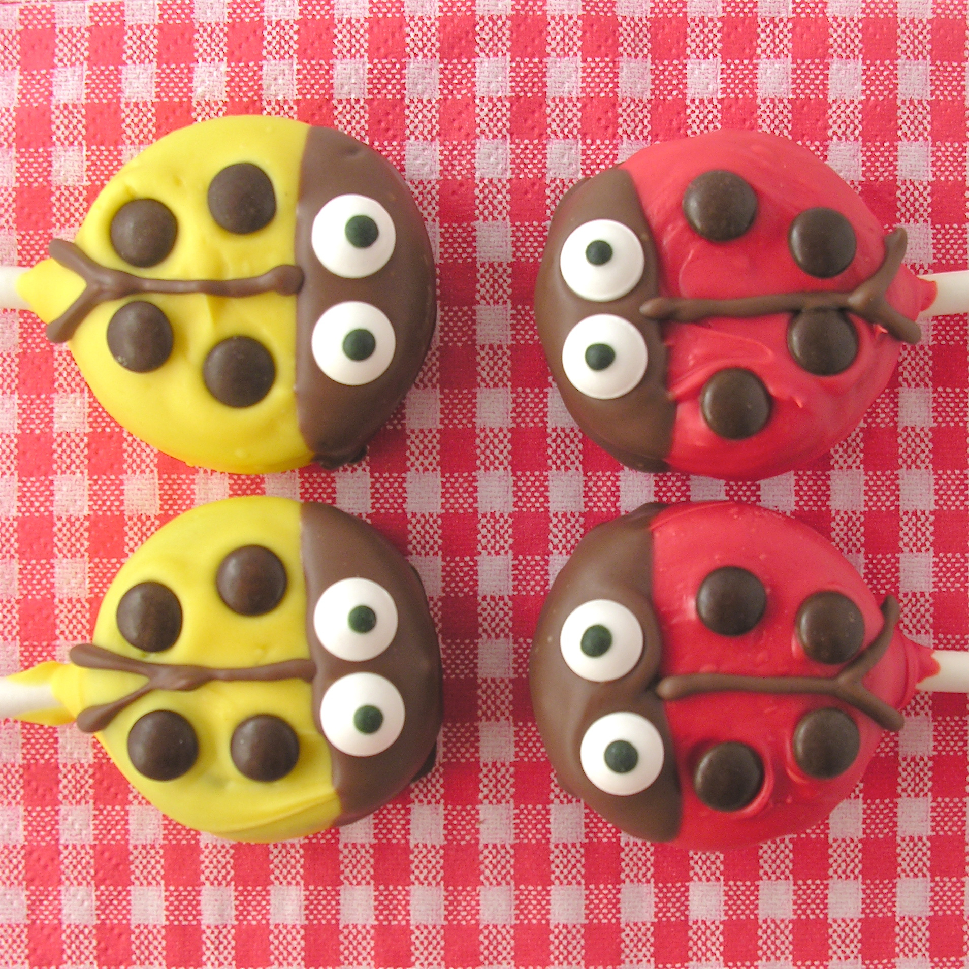 What could be better than a cute ladybug cookie on a stick?  Biting in and finding an OREO!!!!!