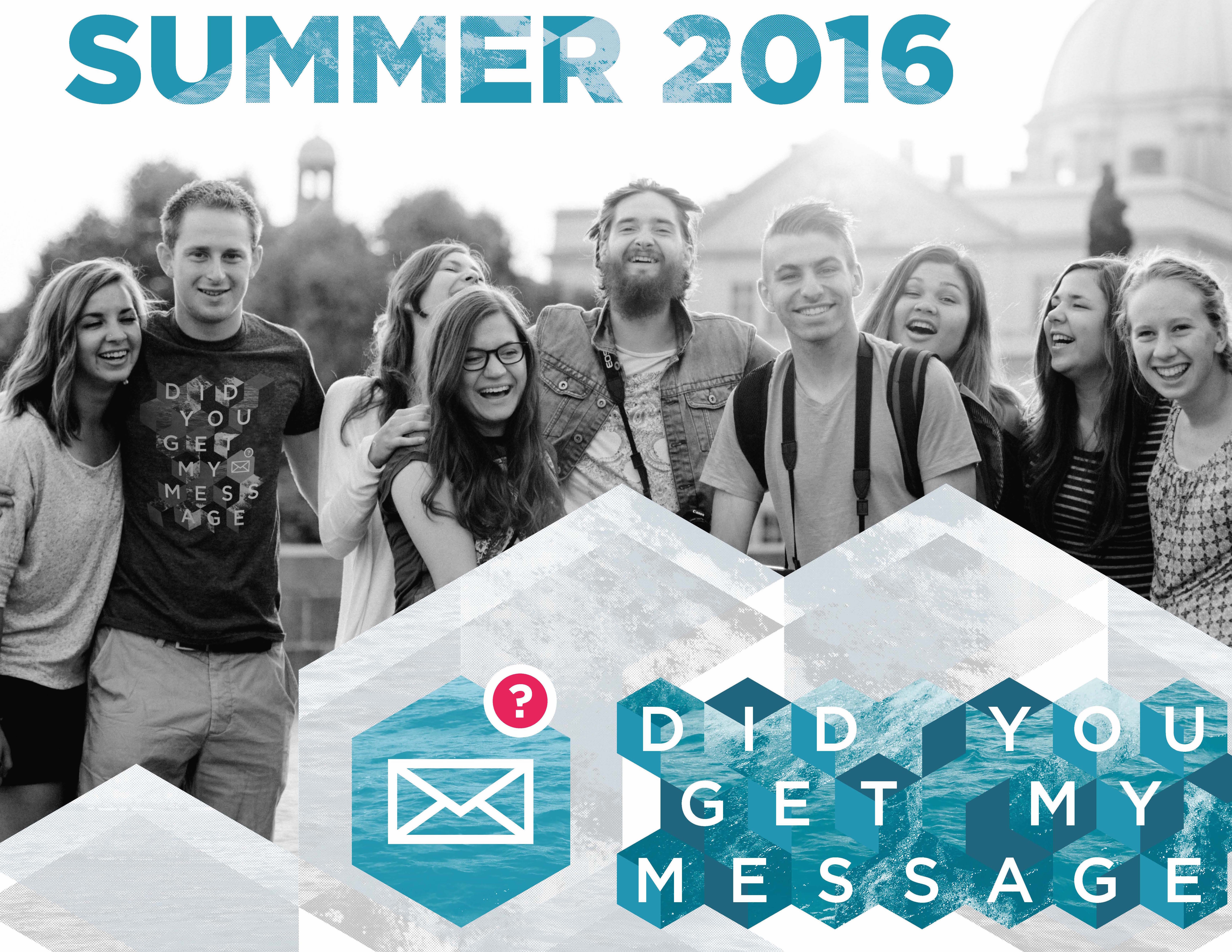 I work for an organization named Josiah Venture. We are a movement of God among the youth of Eastern and Central Europe that finds its home in the local church and transforms society. We plan over 100 evangelical camps each summer in 13 different countries, and each camp has the same theme. This year the theme is “Did You Get My Message?”, and this is the camp logo- on all of the t-shirts and banners and materials.