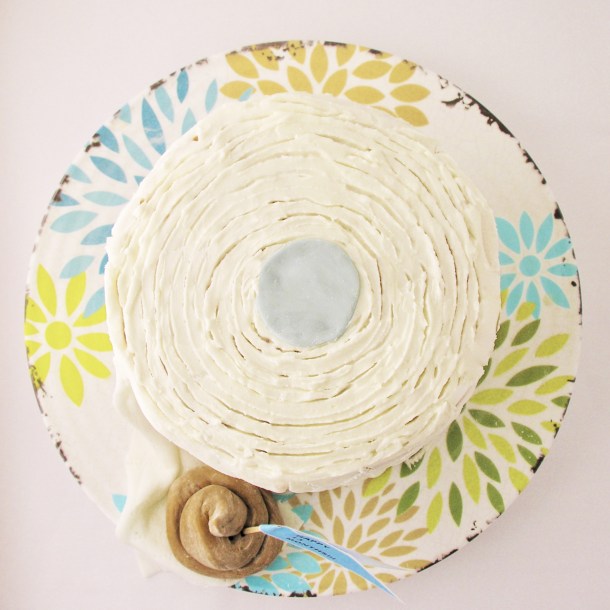 - Press bits of the remaining dough flat with your hands and lay it on the top of the apples, pinching together each section to form a complete layer of dough on top of the apples. *Note: This step sounded difficult to me, so I simply rolled a 10 inch circle of the dough on parchment paper using a rolling pin, and flipped it over the apple layer like a pie crust*