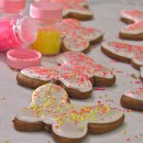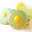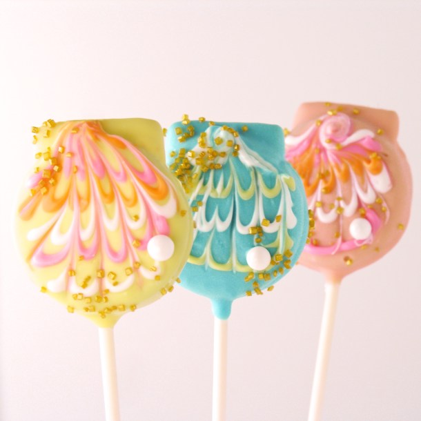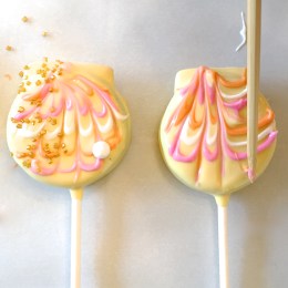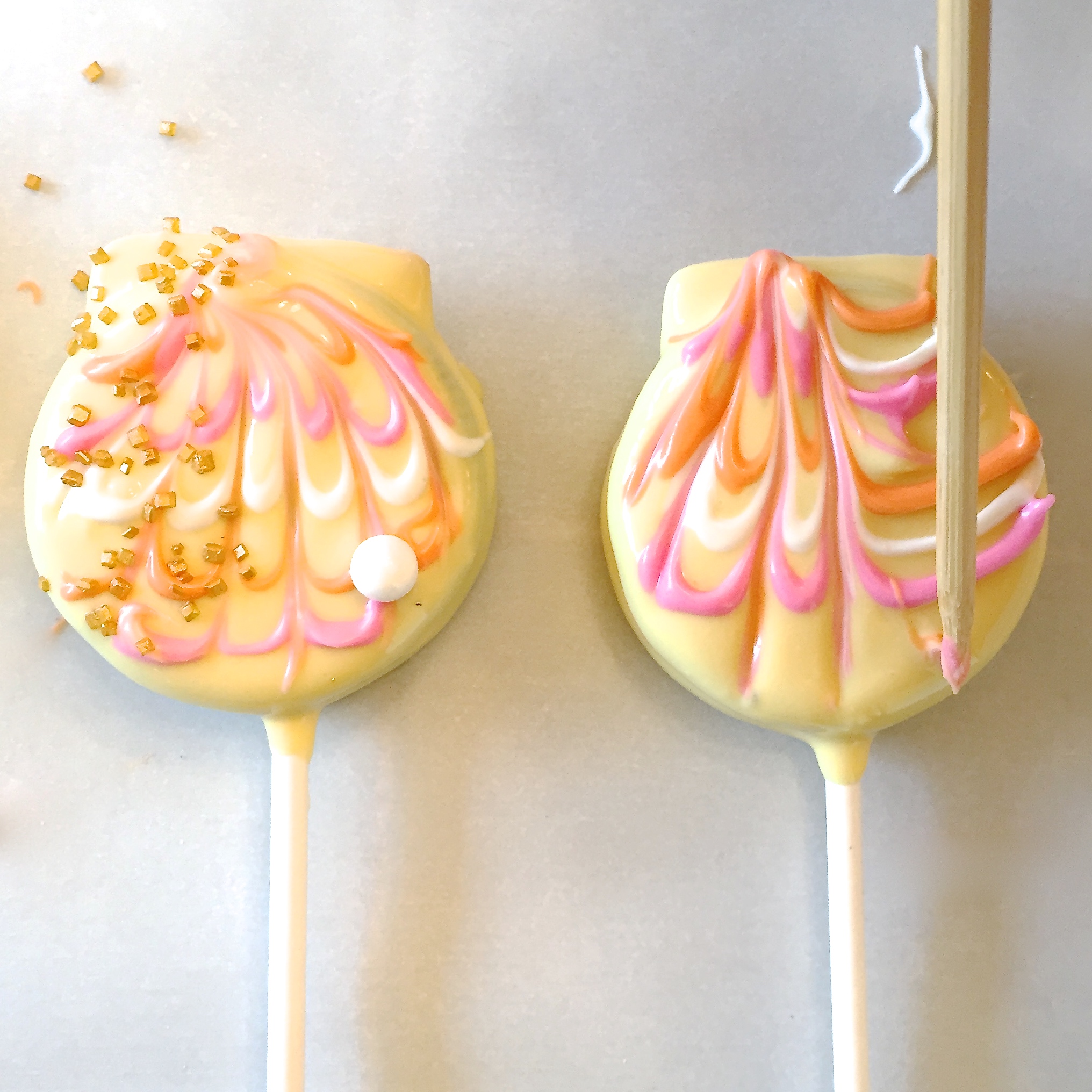 - Use a toothpick to pull the lines of color to the lower center of the cookie, pulling in along the lines of the cookie’s scalloped edge.