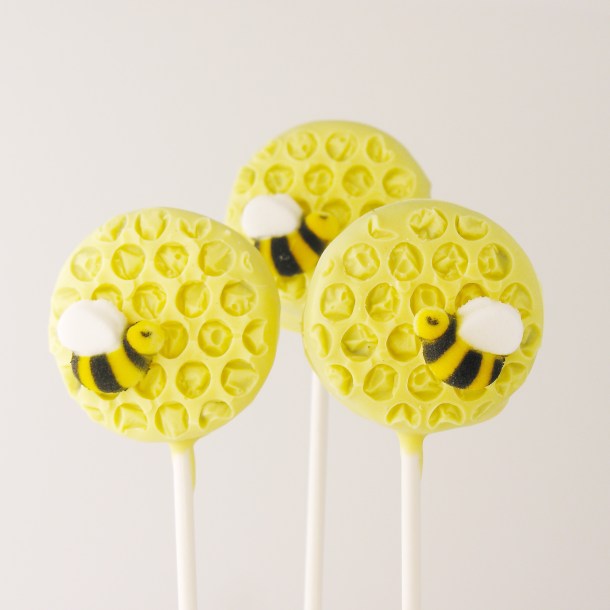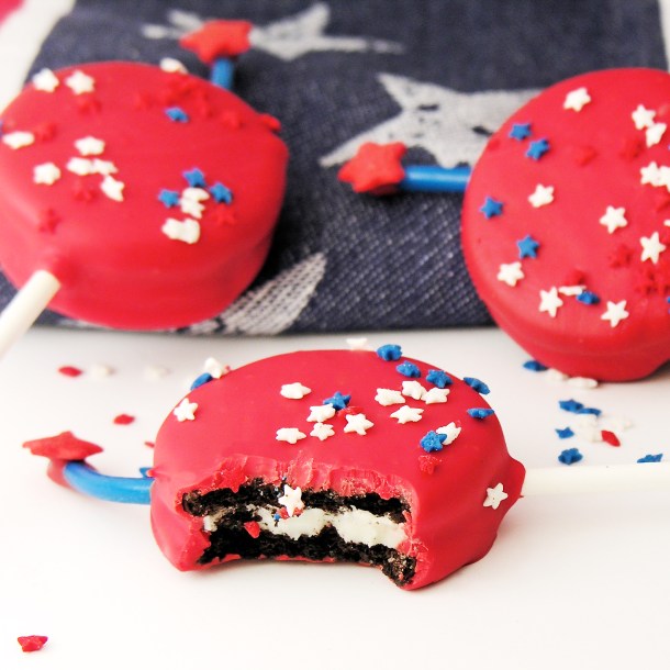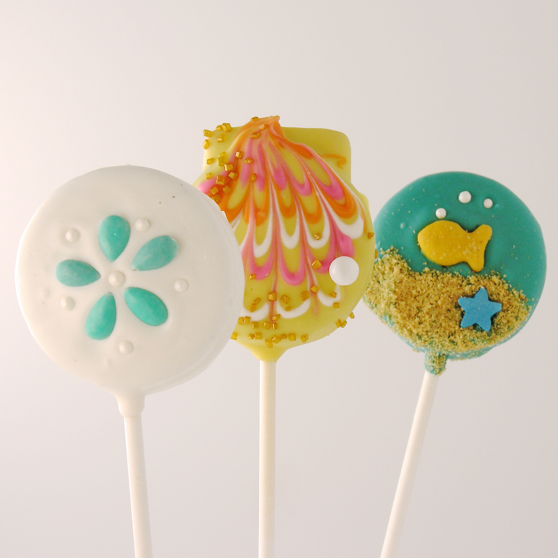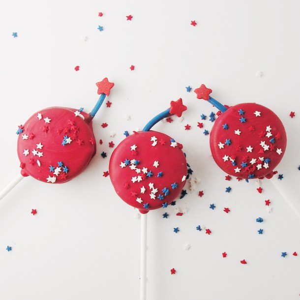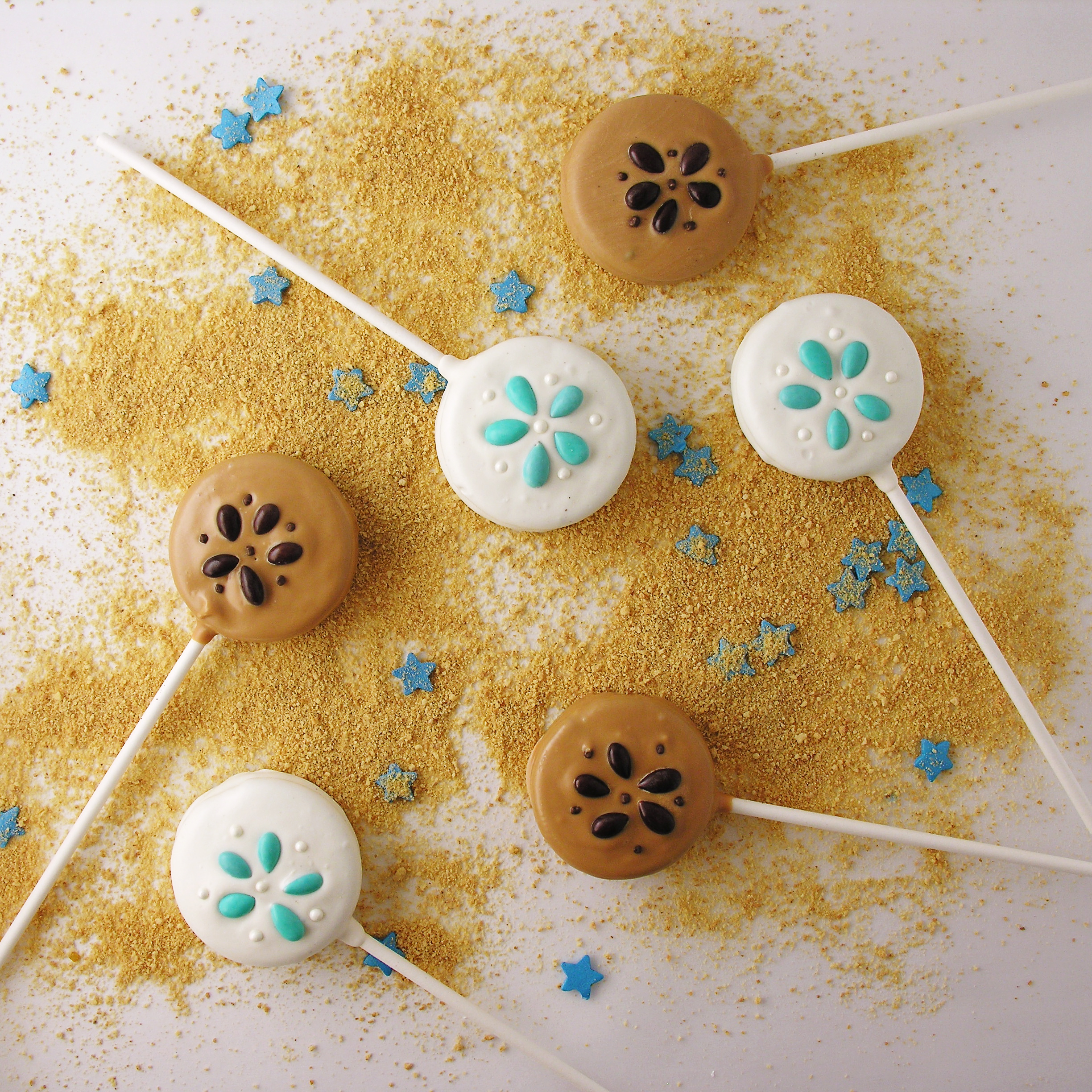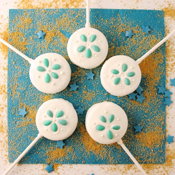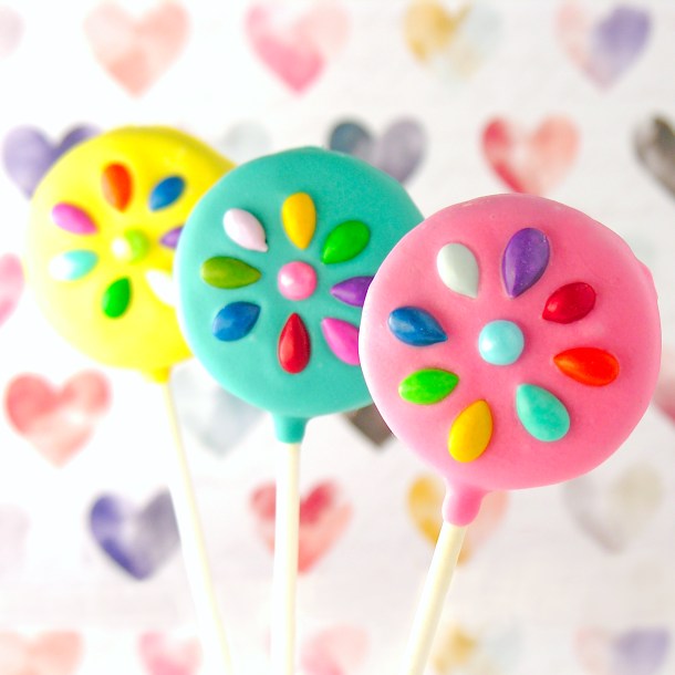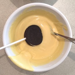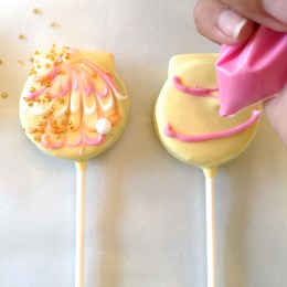 Note: Only do one to two cookies at a time. You want the dark chocolate on the cookie to still be soft when you pull your lines of color in. If your dark chocolate in the bowl begins to cool and harden, just pop it back in the microwave for 30 seconds.