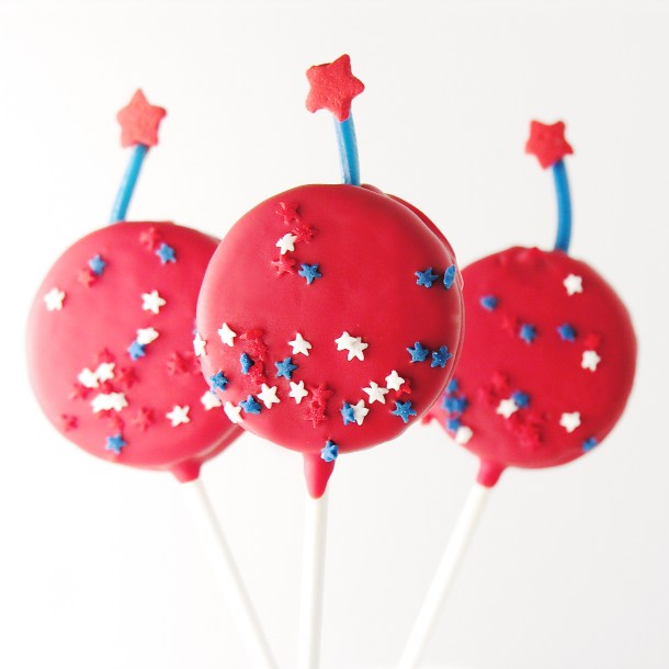 - 1/4 bag of Wilton’s candy melts in blue, white and orange