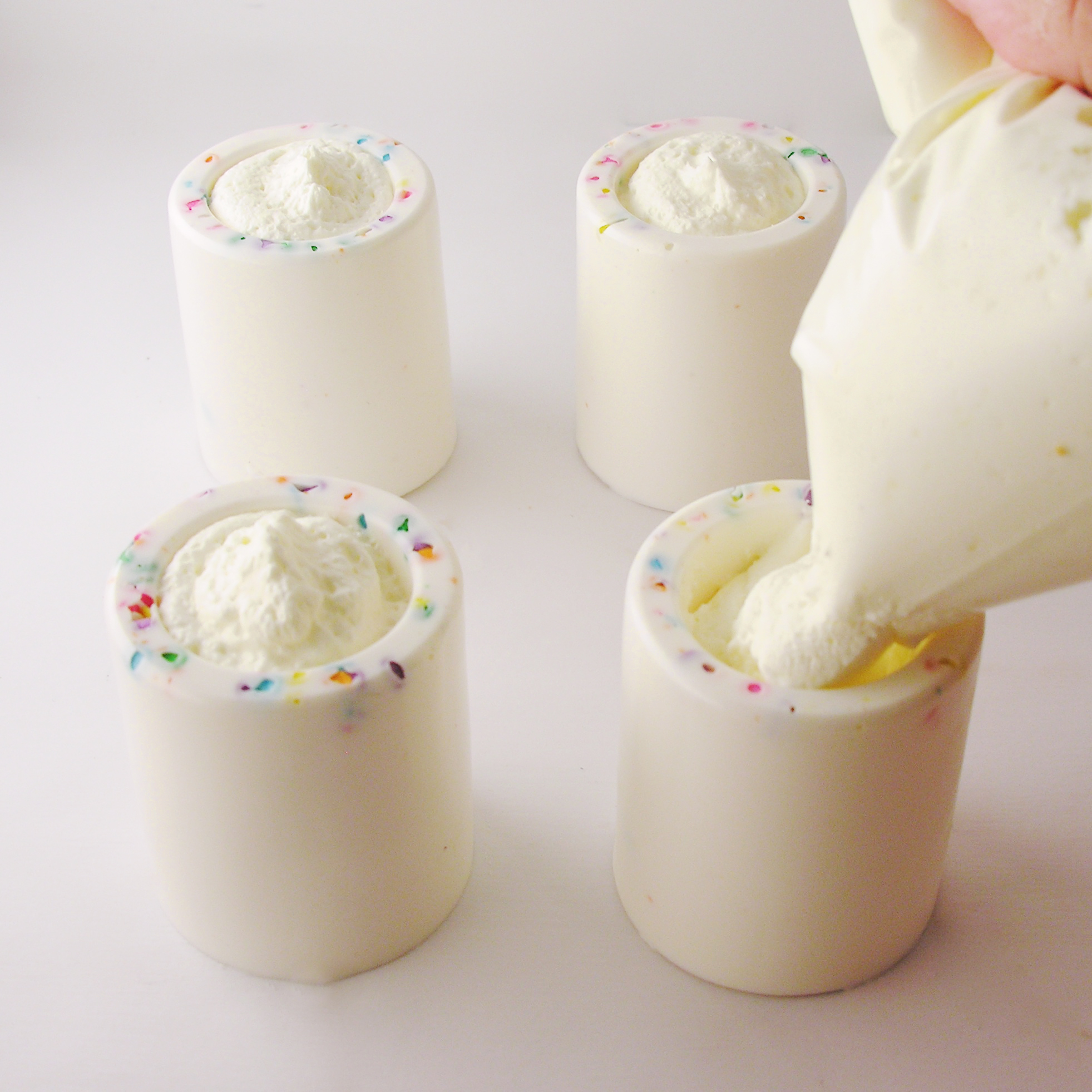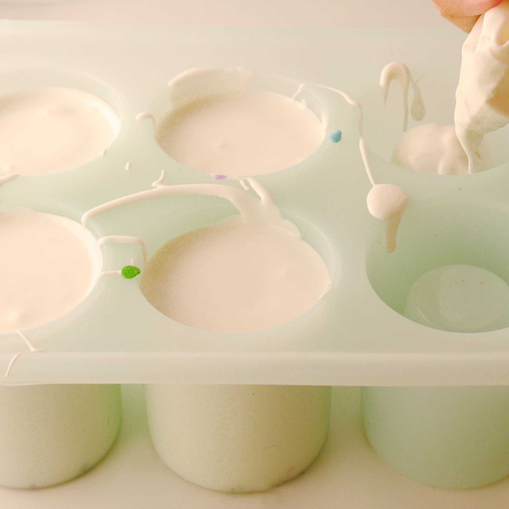 - Carefully spoon the blue, white, and red melts into individual zip-top bags, zip them shut, and clip a small corner off the bottom of the bag with scissors.