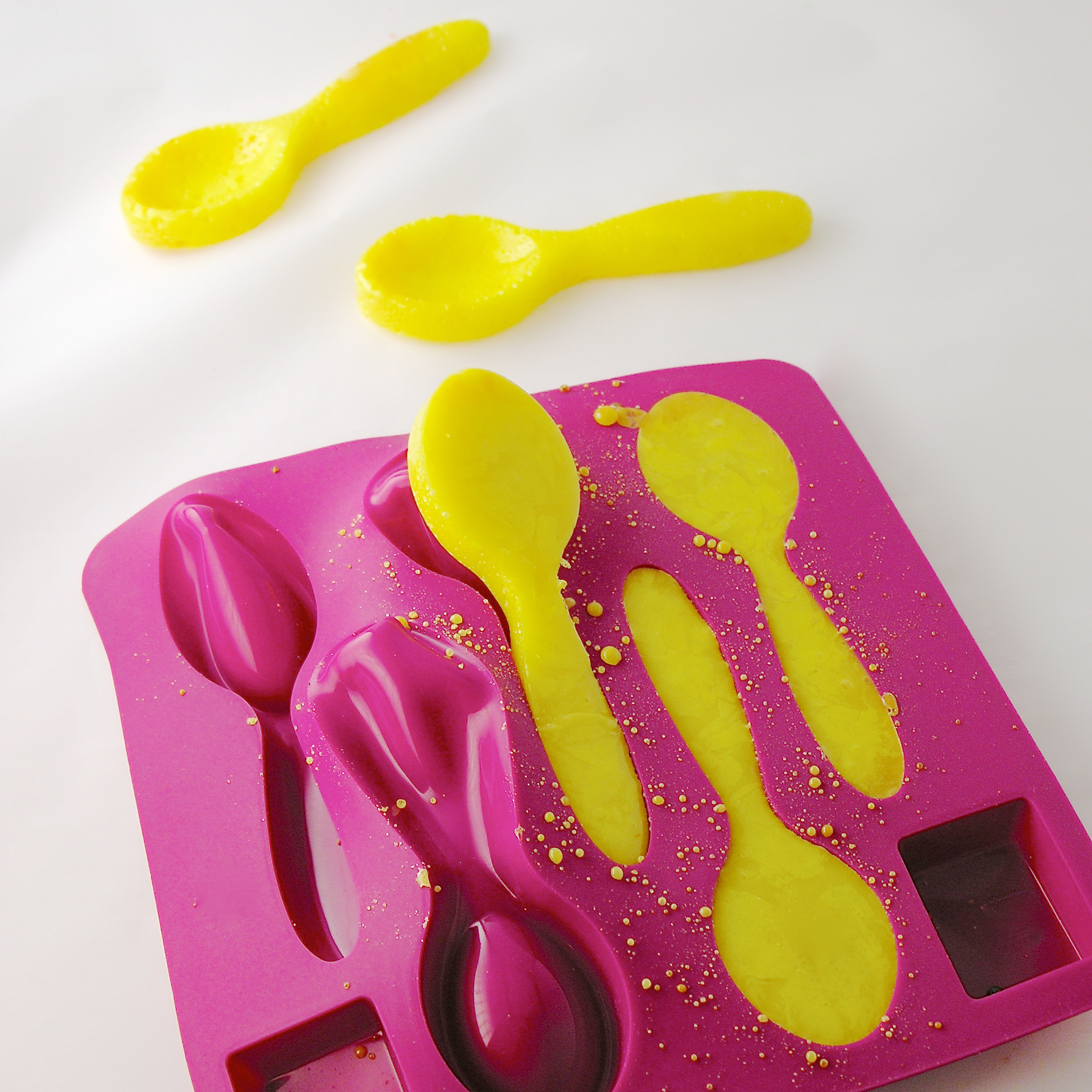 - Melt third color of Candy Melts and spoon over top 1/4. Tap stick against bowl to drain excess and set on parchment paper to harden.