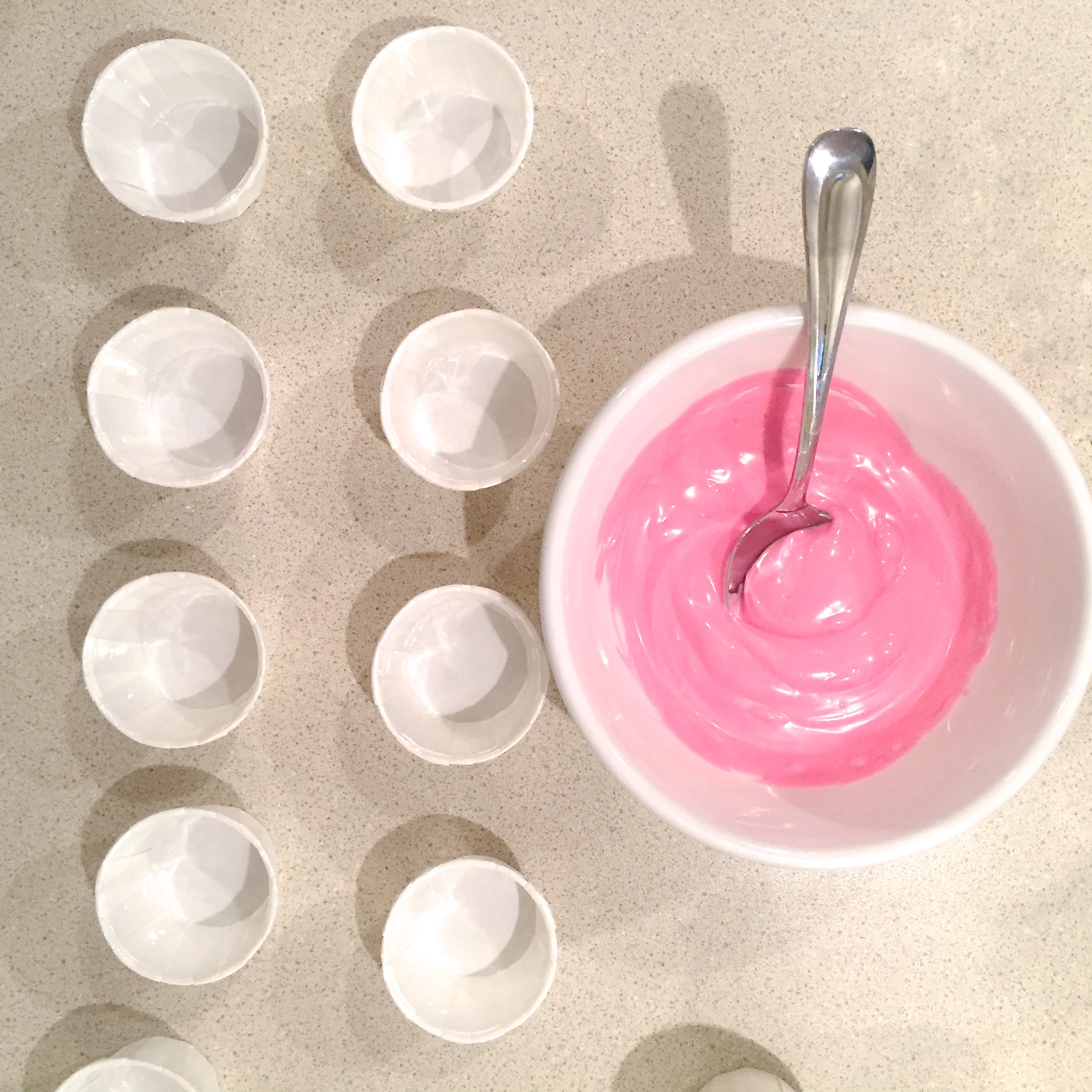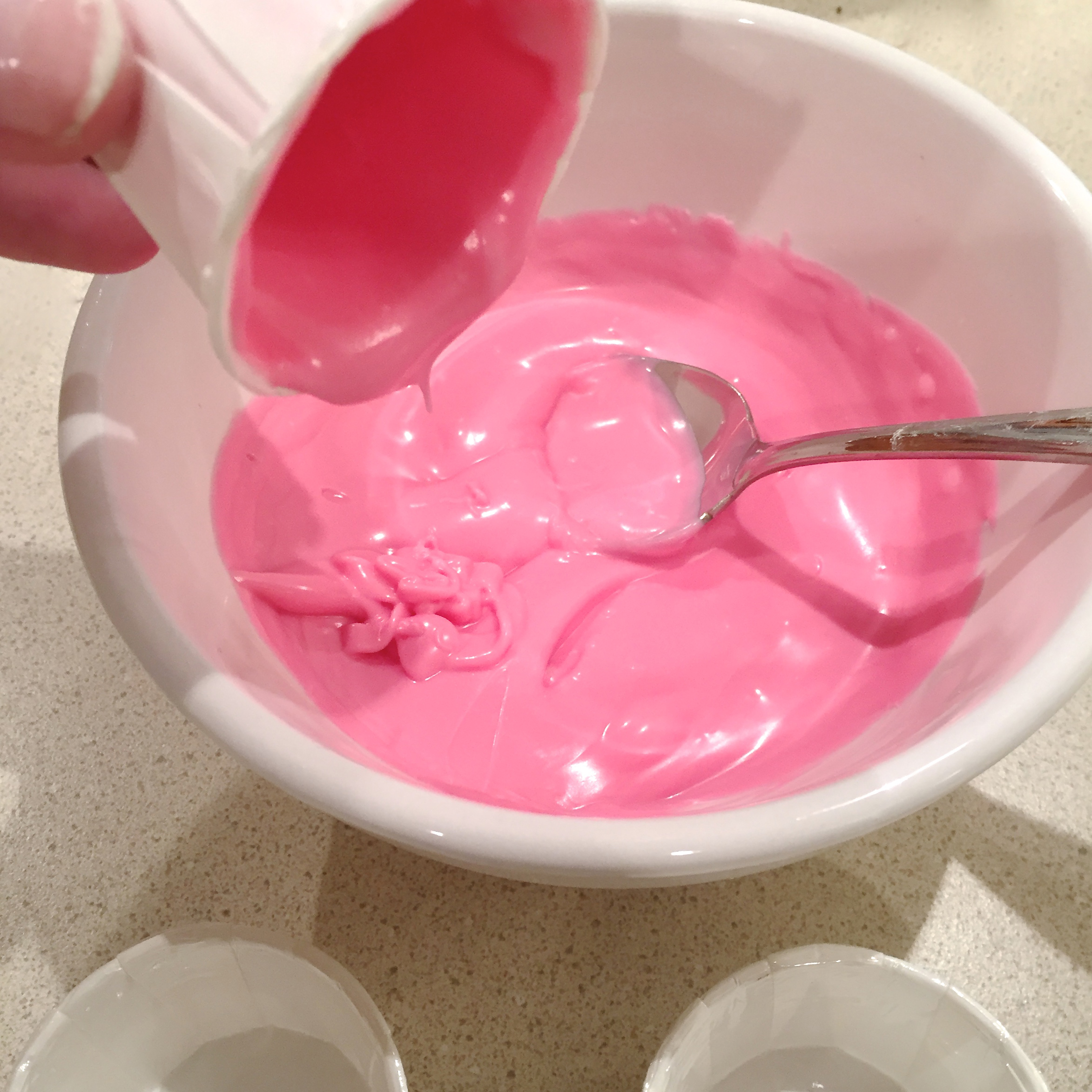 - Melt one color of Candy Melts in the microwave in 30 second increments, stirring between until melted and smooth.