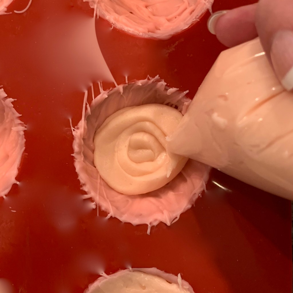 - Add about half of the cooled passion fruit filling to the mixture and beat on high until light and fluffy.