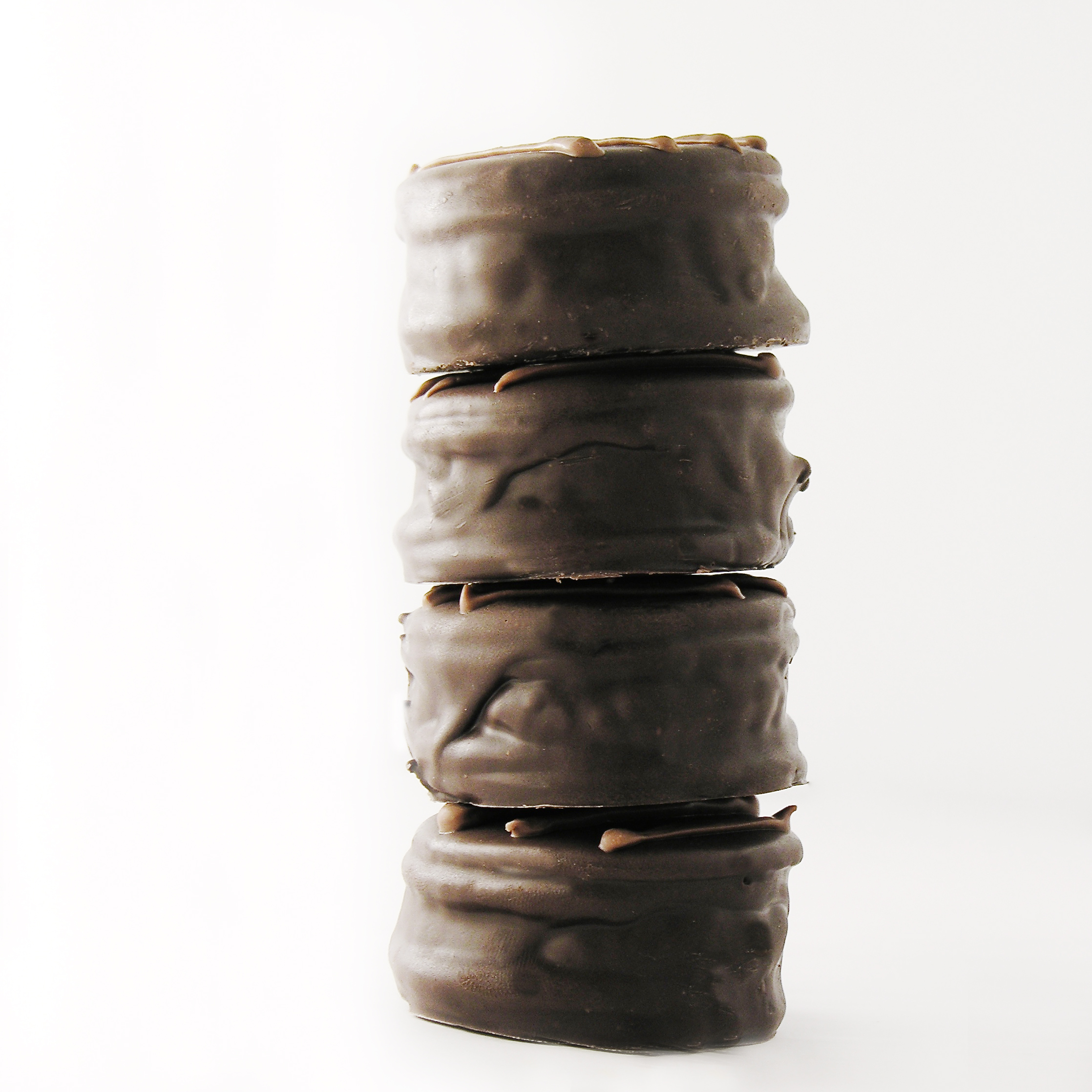 - Place the top of the cookie back on and allow white chocolate to harden (5 minutes or so), cementing the cookie back together with a stick inside. (I like to place all the cookies on a small baking sheet and set them in the freezer for a few minutes to really firm them up before dipping)