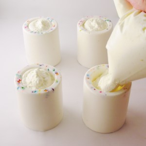 So… here’s a second go-around with these flavors except that this time it is WAY more real-fruity, and a totally different feel than the first time I combined these ingredients in a cupcake! The first time was more flavoring from a passion fruit syrup. This time it’s all fruit! My husband says they are like a fruit-filled doughnut and that the filling is “SO good!” I like the decorations on my first cupcakes better, but had no time to make meringues today. Check it out for inspiration though!