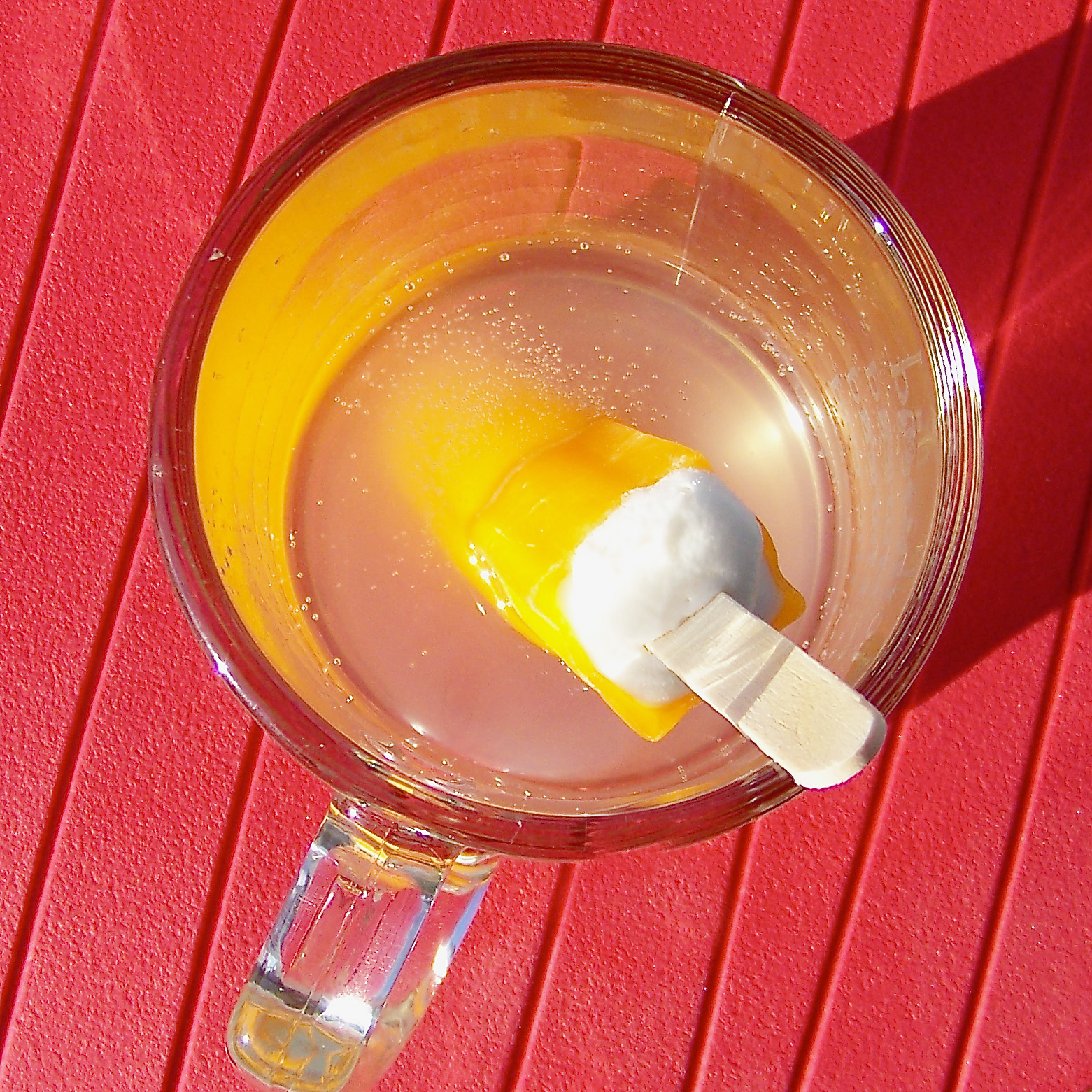 - The next day, clip the top of the cup with a scissors and tear away the paper cup. Place uncovered pop on a paper plate or parchment paper in the freezer.