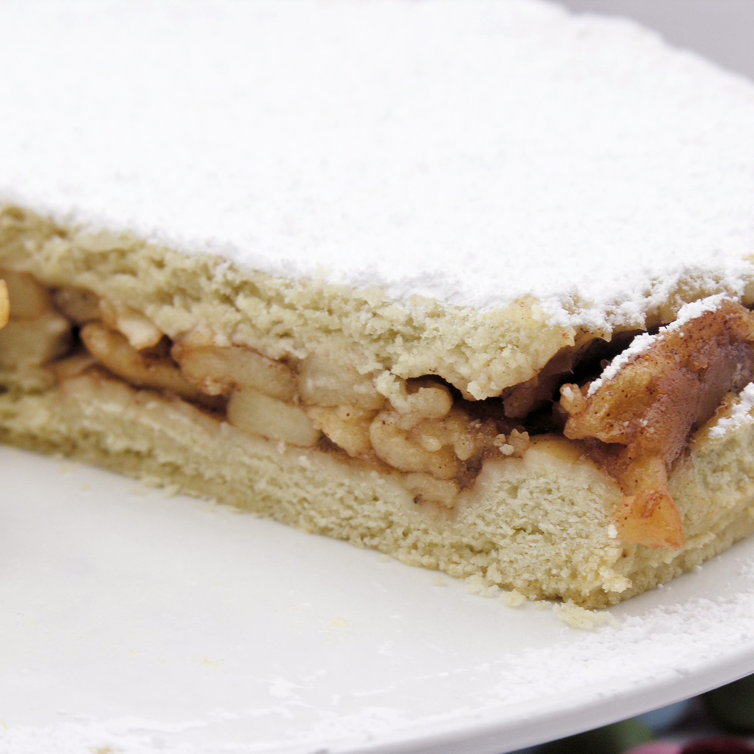 Grandma Gisi grew up in Neumarkt, a town in Bavaria, Germany. Her aunt Minni used to make this cake, and now she has made it for her own family occasions for years. To me, it feels like shortbread or butter cookies with a big sweet layer of tart apples in the middle. Is it a cake? A torte? It’s like nothing I’ve ever had before and it’s delicious!