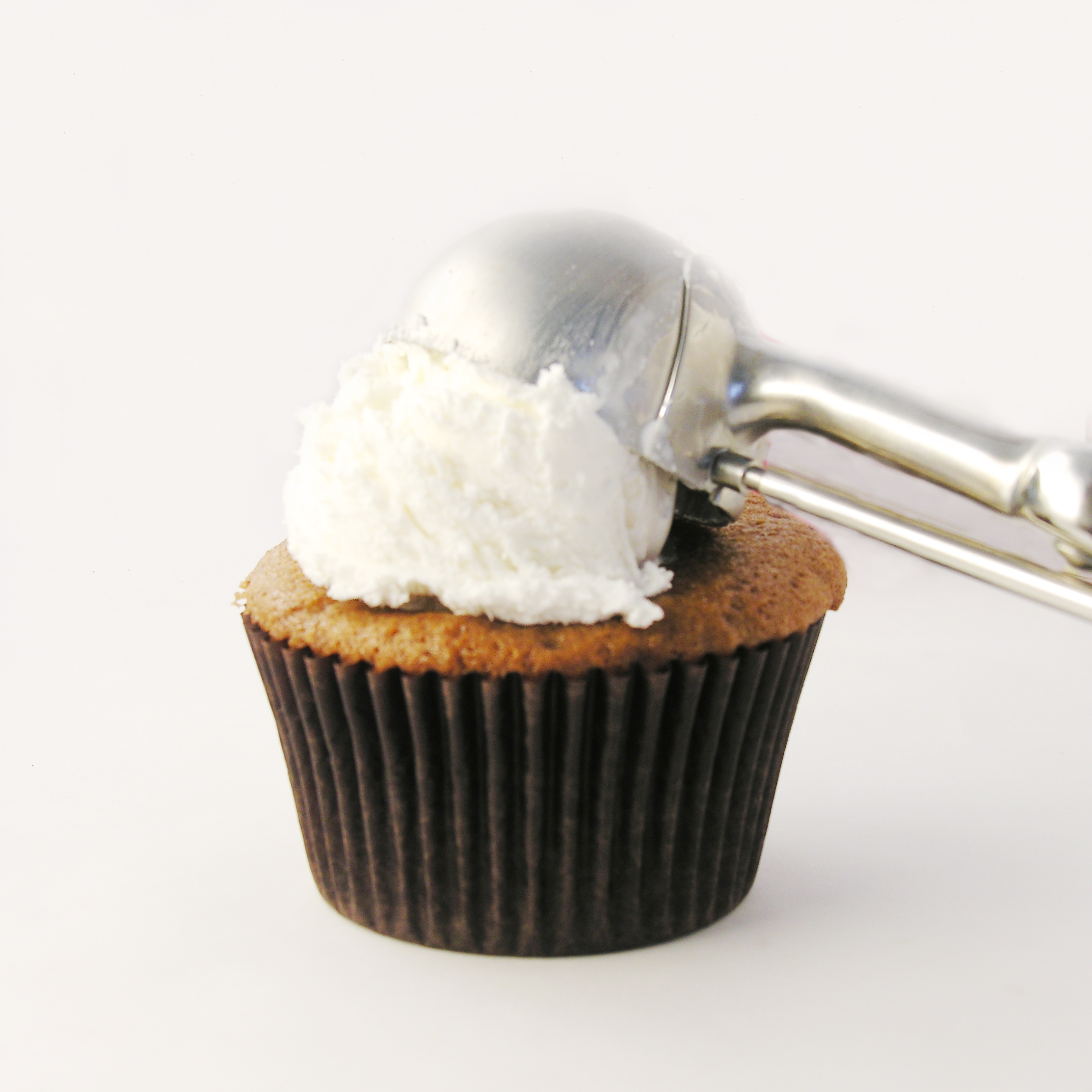 - Use a medium cookie scoop, melon baller or ice cream scoop to spoon a rounded ball of frozen Cool Whip onto the center of each cupcake.