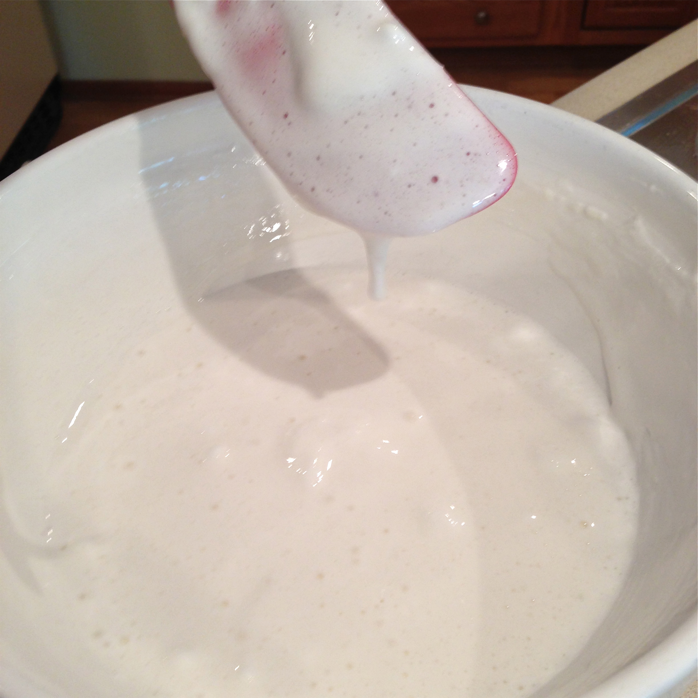 - Add about 1/4 of the powdered sugar, stir until smooth, add another 1/4 and stir. It will become difficult to stir and very sticky.