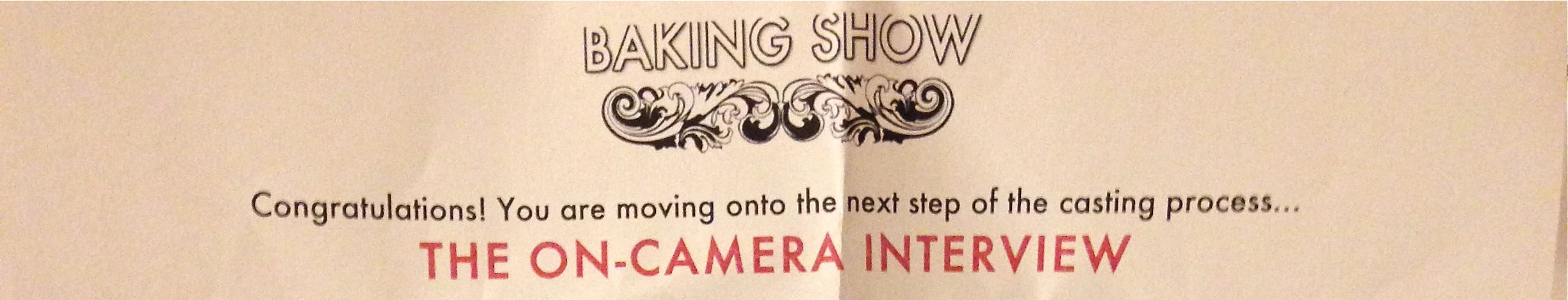 A few days before the audition I got a call from CBS confirming my audition time and making sure I would be bringing everything I needed. This very nice man said–“now, be sure you plate your baked good”. I was like… “um…ok. I will make sure I put it on a plate.” Long pause. “No, you need to plate it.” “Yes,” I replied, “I will put it on a plate.” “You need to plate it- you know, make it look all fancy for the judges?”