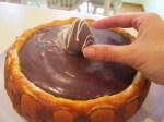- Gently set a chocolate topper over the filling, pressing it lightly against the filling. As the topper warms to room temperature, it will soften and stick more firmly to the cake.ย