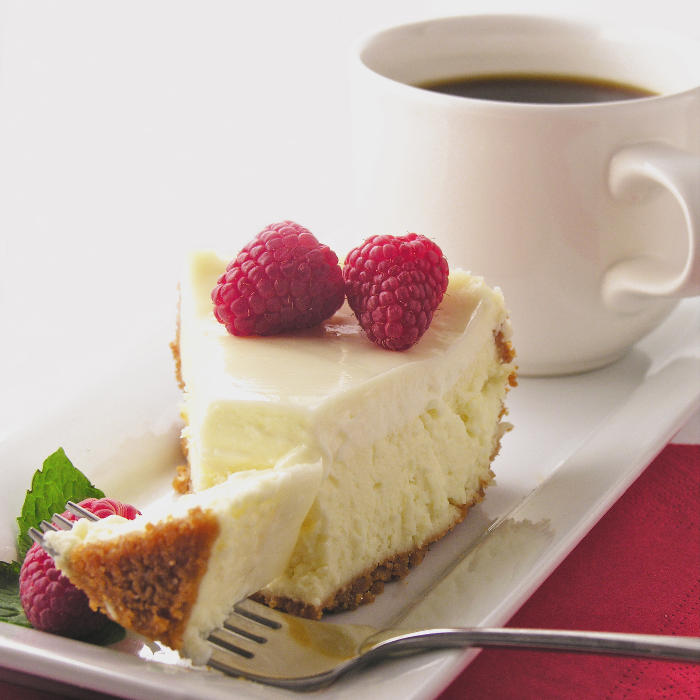 Creamy classic vanilla cheesecake with a sweet and light sour cream topping.
