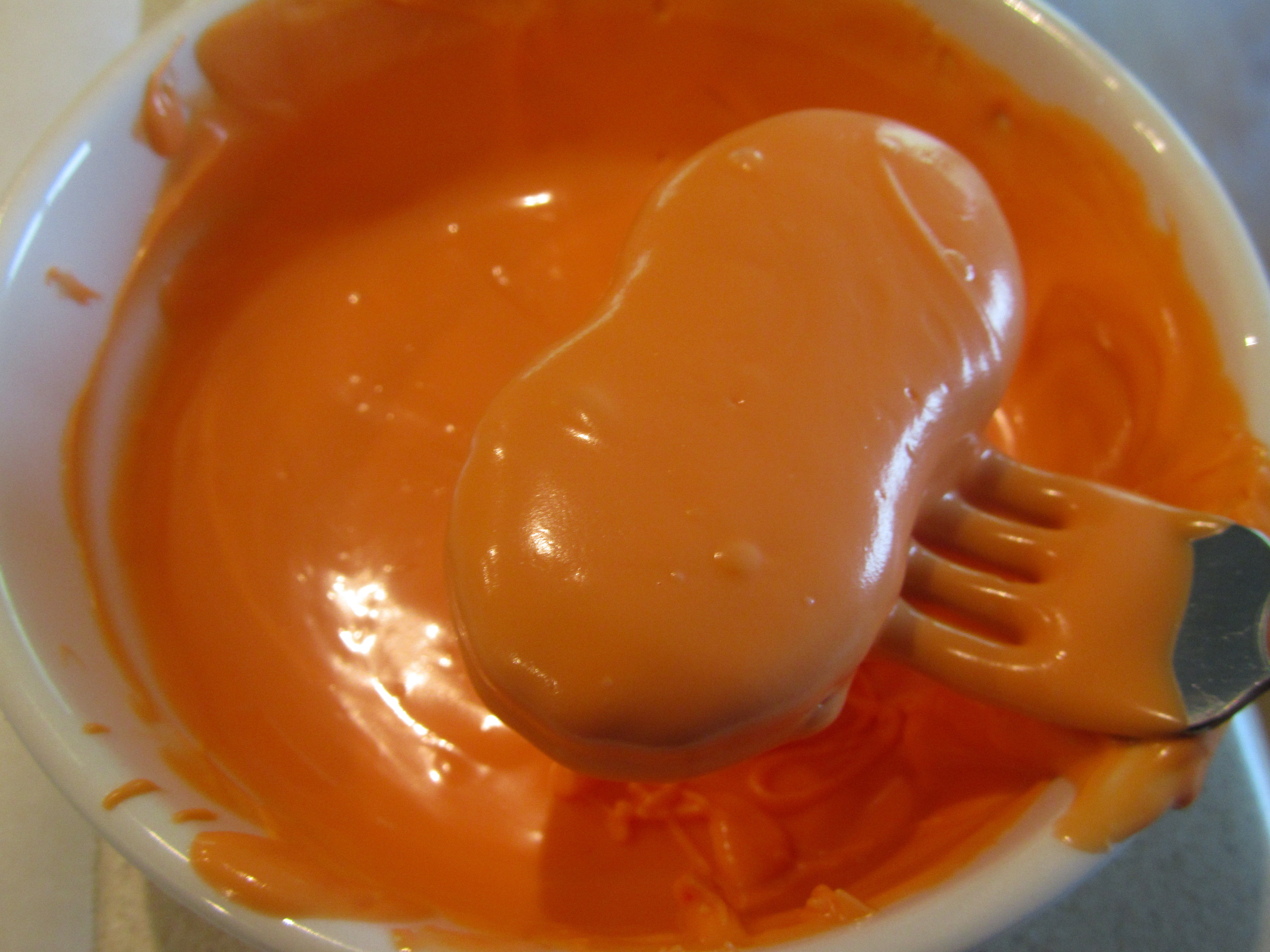 - Fill center of cookie with icing, spreading it to the edges that have hardened.