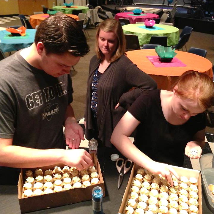 • Use a cake pop to spread batter evenly into bottom of liner and then leave the cake pop in the center.