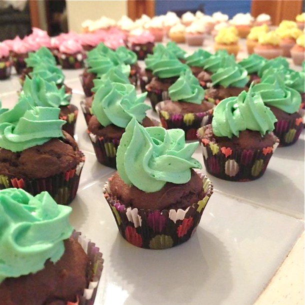 • Bake at 350F degrees for 20-25 minutes, until a toothpick inserted into a cupcake comes out clean.