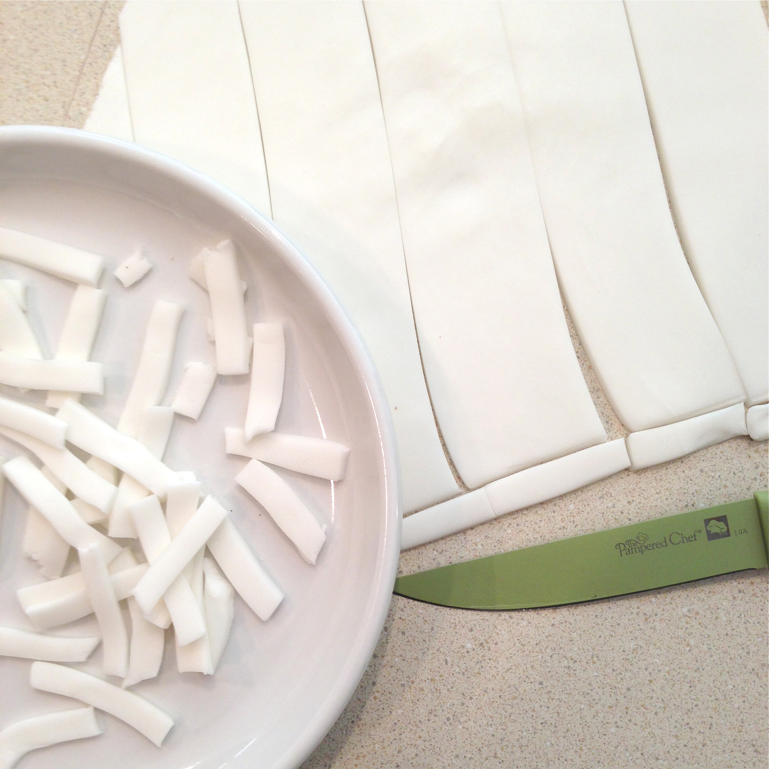 - Lay a piece of parchment paper on your countertop.